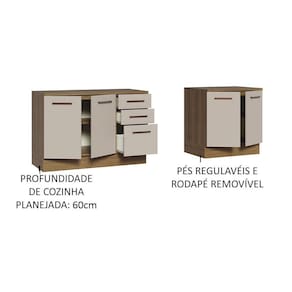 Para completar, os pés são reguláveis em PVC e o rodapé em MDP é removível para facilitar a limpeza.