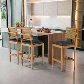 A estrutura desta banqueta é construída com madeira maciça de alta qualidade e parafusos para fixação do assento na estrutura. A madeira maciça é de eucalipto tratado que garante a durabilidade e a resistência da banqueta, tornando-a uma peça que será apreciada por gerações.