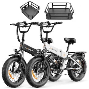 Kit com 2 bicicletas elétricas dobráveis Jasion X-Hunter/Hunter Pro preto e branco, pneus 20x4, motores 1800W e 1400W, baterias 48V15Ah