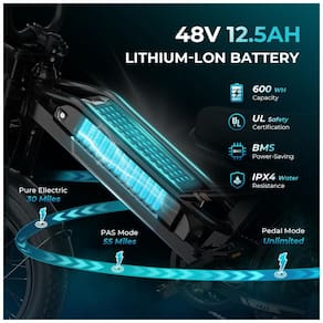 Cada bicicleta do kit é equipada com motor traseiro brushless com aproximadamente 500W de potência nominal e até 2000W de potência de pico, atingindo cerca de 45 km/h de velocidade máxima conforme modo de uso, relevo e peso do usuário. A bateria de íons de lítio de 48V e 12,5Ah, com 600Wh de energia, é removível e oferece autonomia estimada de até 55 km em modo de assistência ao pedal, com recarga completa em aproximadamente 4 a 6 horas, possibilitando uso diário em trajetos curtos e médios.