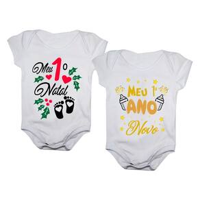 Kit com 2 Bodies de Bebê Natal e Ano Novo.