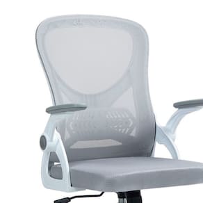 Seu assento em tela Mesh proporciona respirabilidade, evitando o acúmulo de calor, enquanto os braços rebatíveis em nylon, estofados em tela Mesh, garantem versatilidade e suporte adicional. A base em polipropileno confere leveza e resistência, e os rodízios em nylon permitem fácil movimentação sem danificar o piso.
