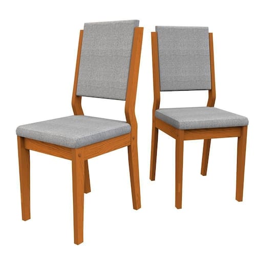 Conjunto Com 2 Cadeiras Estofadas Carol Cor Ype Linho Cinza Claro