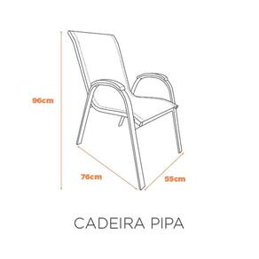 A cadeira Pipa é super estilosa para usos em áreas de piscina e ambientes externos! Seu assento em tela garante beleza, além de conforto para quem utiliza. Além de ter a resistência de seu acabamento em alumínio, é ideal para uso em área externa. Seu detalhe do braço, garante todo o charme da madeira, porém, com a resistência da resina. Acabamento da Estrutura: Tela Mesh Ambiente Principal: Jardim e Varanda Cor: Cinza Cor do Produto: Cinza Escala de Brilho: Fosco Estrutura do Assento: Fixo Estrutura do Encosto: Fixa Itens Inclusos: Cadeira Completa Manual de Montagem e Instalação: https://product-hub-prd.madeiramadeira.com.br/954975/documents/b4301d76-c3fa-41fc-9057-fb8bcfa8c7a680241727447507954975115280.pdf Marca: Fratini Móveis Necessita Montagem: Não Origem do Produto: Importado Peso: 3,42 kg Possui Rodízio: Não Recomendações de Uso, Manutenção e Limpeza: Pano Umido Resistente à Chuva: Sim Suporta Até (kg): 120 kg Tipo de Assento: Fixo