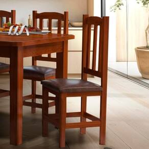 Este conjunto de duas cadeiras oferece conforto e resistência, com estrutura 100% em madeira maciça e assento estofado em corino. Seu design moderno e robusto complementa diversos ambientes, garantindo suporte de até 120 kg por cadeira. Ideal para compor espaços elegantes e funcionais.
