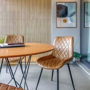 Kit Com 2 Cadeiras Haifa Assento Em Mdf E Base Em Aço Fratini Caramelo A cadeira Haifa fica linda ao ser utilizada em decoracoes com tendencias modernas ou industriais. Ela e uma cadeira toda revestida em couro ecologico com detalhes em matelasse. Sua base em aco garante a resistencia da cadeira. Caracteristicas: Assento em MDF e Espuma com Revestimento em PU Detalhes em Matelasse e Base em Aco Pes Regulaveis: Fixo Como Utilizar: Cuidados Com o Produto / Pano Umido Materia Prima: Polipropileno