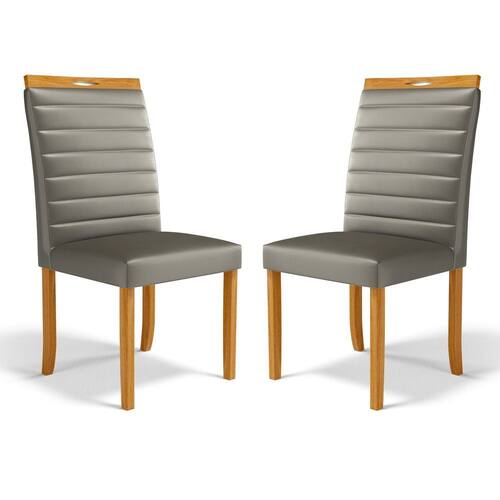 Kit Com 2 Cadeiras Sara Madeira Maciça Estofadas Para Mesa De Jantar Linho Chumbo 406
