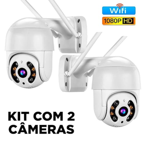 Kit com 2 câmeras segurança ip wifi speed dome full hd ptz ip66 com kit com 2 cameras 360 a prova d'agua