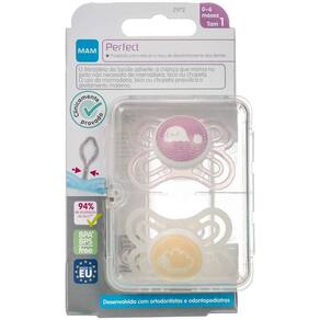 O kit com 2 Chupetas Perfect da MAM é ideal para crianças de 0 a 6 meses. As chupetas possuem silicone SkinSoft, macio com superfice texturizada e sedosa, comprovadamente aceita por 94% das crianças. Sua base extra fina e flexível é 60% mais fino e 4x mais flexível. A embalagem é dupla e contém 2 (duas) unidades. Acompanha prática caixa de transporte e de esterilização. Não é possível escolher o desenho da chupeta!
