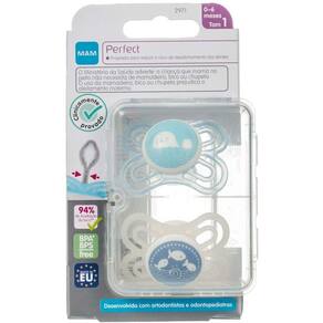 Kit com 2 Chupetas Perfect 0-6m Azul - MAM