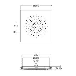 A instalação do chuveiro Raindream pode ser feita tanto no teto, quanto na parede. Este produto não acompanha o braço que liga a saída de água da parede ou teto até o chuveiro." Altura do Conjunto: 35 cm Ambiente: null Ambiente Principal: Banheiro Cor: Cromado Cor Predominante: Cinza Informação Complementar: 2x Chuveiro Quadrado 350x350 de Embutir Raindream Cromado Largura: 35 Altura: 35 Peso: 3.165