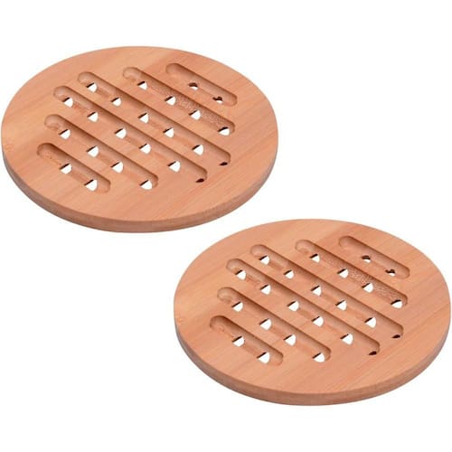 PROTEÇÃO SUPERIOR AO CALOR: Resistentes ao calor, protegem as bancadas e superfícies quentes, danos causados pelo calor devido a pratos, potes ou panelas quentes. Feito de bambu 100% natural e renovável, livre de odores, ecológico, sem poluições
