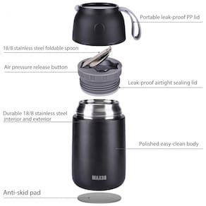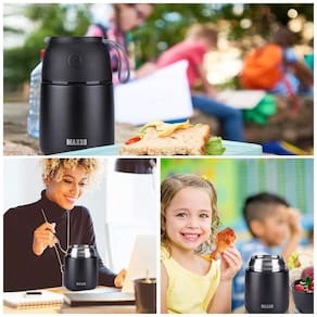 2 THERMOS FOOD JAR SET A caixa inclui 2 potes de comida isolados 500, 700mL, 1 colher de sopa dobrável, 1 manual do usuário. À PROVA DE VAZAMENTO Embale com confiança nossos potes de comida à prova de suor e vazamentos em sua lancheira. Não há necessidade de se preocupar com a bagunça do vazamento. O design de liberação de pressão de ar facilita a abertura. ISOLAMENTO A VÁCUO Mantenha alimentos quentes ou frios frescos por até 24 horas conte com a tecnologia de isolamento a vácuo Maxso. Leve sua comida caseira para onde for MATERIAL DE GRAU DE ALIMENTO Interior e exterior de aço inoxidável, silicone e plástico de segurança livre de BPA, garantem que nossos clientes possam desfrutar de nosso recipiente de zenamento de alimentos saudáveis sem se preocupar Marca: Não Informado