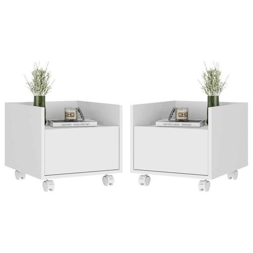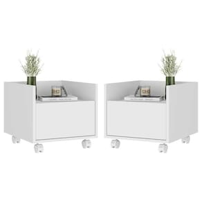 Kit com 2 Mesas de Cabeceira 40 cm com Rodízios Multimóveis MP4045 Branca - Branco