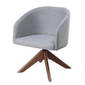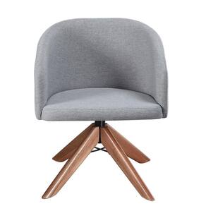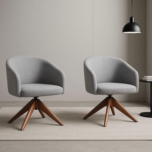 Kit com 2 Poltronas Giratórias Zara em Madeira Castanho – Exclusiva Linho Cinza -