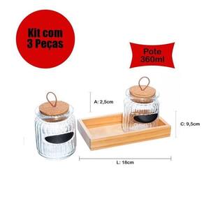 Kit Com 2 Potes De Vidro 260ml E Suporte Em Madeira Kit Com 2 Potes De Vidro 260Ml E Suporte Em Madeira - Kit 2 Porta Mantimentos Em vidro e Suporte em Bambu- Lyor