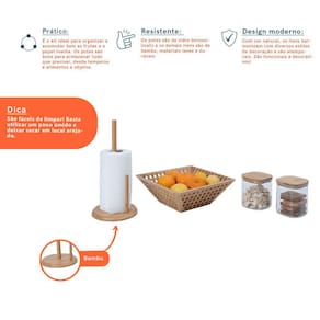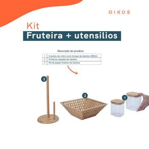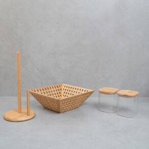 "Conheça o Kit com potes de vidro com tampa de bambu 800ml, fruteira vazada de bambu, porta papel toalha de bambu de bambu da OIKOS.Resistente, multiuso e com design moderno, é o kit ideal para organizar e acomodar bem temperos, alimentos e seus itens. Os potes, a fruteira vazada, o porta papel toalha são funcionais e decorativos.Os potes são de vidro e bambu e a fruteira e o porta papel toalha são de bambu. Para limpar, basta utilizar um pano úmido e deixar secar em local arejado. Para a parte de vidro dos potes, é só lavar em água corrente com detergente.Leve qualidade e modernidade para sua cozinha!O kit contém:2 Potes de vidro com tampa de bambu quadrados 800mlFruteira vazada de bambuPorta papel toalha de bambu"