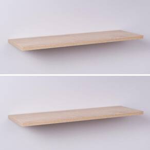 Kit com 2 Prateleiras de Madeira na cor Madeira Clara (Carvalho Treviso) 40cm x 20cm x 1,5xm Com Suporte de Embutir (Invisível) . Cada prateleira do Kit é acompanhada de 2 suportes de tipo de Embutir (Invisível) para fixação. Descrições: Cor: Madeira Clara (Carvalho Treviso) Tamanho: 40cm largura x 20 cm profundidade x 1,5cm espessura Material: Madeira MDP Fixação: de embutir (invisível) Instruções de uso e instalação: Para fácil limpeza, utilize pano levemente umedecido. Não utilizar produtos químicos ou abrasivos. Acompanha embalagem com as instruções de montagem e fixação. Observação: todos os itens de decoração das fotos não acompanham o produto.