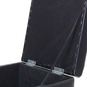 - Tecido Interno: TNT - Estrutura: Madeira de Eucalipto - Espuma Superior e Lateral: Poliuretano Densidade 23 (D-23) - Pés parafusados com 2 cm de altura - Duas Dobradiças com melhor sustentação para tampa
