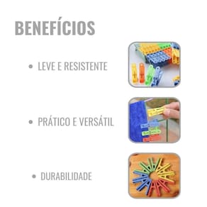 Cansado de pregadores que quebram facilmente e não seguram suas roupas? Nosso Kit com 40 Pregadores de Plástico Reforçado é a solução ideal! Feitos com material resistente e design eficiente, eles garantem a fixação segura das suas roupas, mesmo em dias de vento forte. Tenha mais praticidade e durabilidade no seu dia a dia!