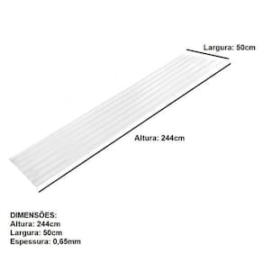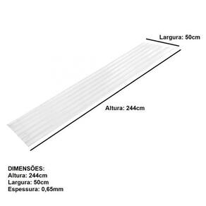 Telha em Policarbonato, com alta resistência, tratamento Anti UV com garantia de 10 anos contra amarelamento. Ideal para que necessita de entrada de iluminação natural. Pode ser utilizado em varandas, pergolados, cobertura de garagens e residências ou onde sua criatividade imaginar Acabamento: Natural Altura do Conjunto: 244 cm Ambiente: null Ambiente Principal: Jardim e Varanda Cor: Branco Cor Predominante: Branco Garantia do Fornecedor: 10 anos Informação Complementar: 20x Telha Policarbonato 244cm x 50cm Largura: 50 Altura: 244