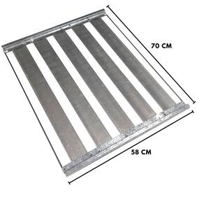 A Assadeira é feita em aço alumínio e possui 5 tiras com capacidade para até 25 pães de 50g. O fundo da assadeira é feito de tela de alumínio perfurada, facilitando o trabalho e a limpeza do produto.