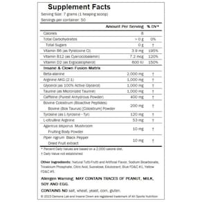 Fórmula Avançada: O Insane Clown combina uma variedade de ingredientes de alta qualidade para oferecer resultados extraordinários. Com 400mg de cafeína, 1000mg de Taurina, 1000mg de Arginina e 2000mg de Beta Alanina, esta fórmula única é projetada para aumentar sua resistência, força e foco durante os treinos.