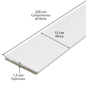 Kit com 3 Barras Rodapé de MDF 15cm x 15mm x 2.20m MDF Revestido Frisado Casablanca 6,6m Branco