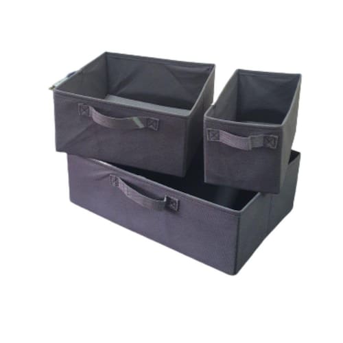 O kit acompanha 3 caixas sendo uma de cada medida As caixas organizadoras são ideais para serem usadas na organização de sua casa. UmaCaixa, que pode ser usada em closet, armários, quarto, salas e escritórios, mantendo oAmbiente bem organizado. Suportando até 8 quilos bem distribuídos.Dimensões caixa 1: largura 14 cm altura 15 cm profundidade 28 cm peso 330gDimensões caixa 2: largura 28 cm altura 15 cm profundidade 28 cm peso 380gDimensões caixa 3: largura 42 cm altura 15cm profundidade 28 cm peso 420gMaterial: tnt 80g estrutura de cadboard poliésterCores: rosa, lilás, violeta, verde bandeira, vermelha, azul royal, amarela, bege palha, marrom e cinza grafite, azul bebe.