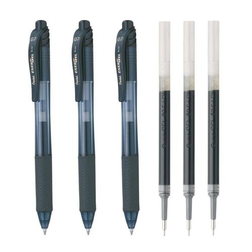 Kit Com 3 Canetas Pentel Energel 0.7 Com 3 Refis Preto