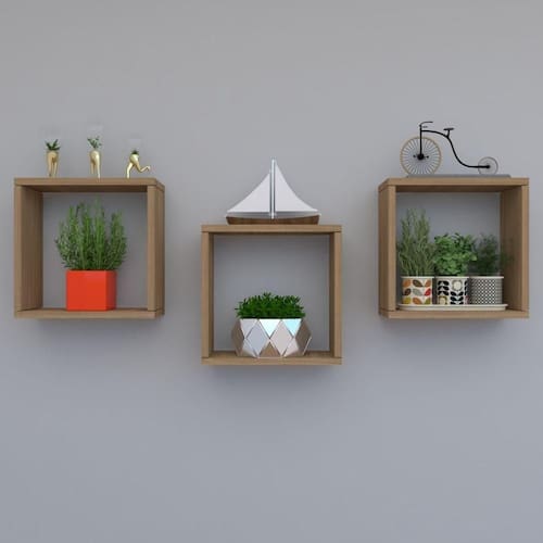 Kit com 3 nichos decoração para Quarto Amadeirado 30x30x12cm