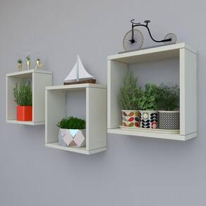 - Profundidade: 12 cm Perfeitos para criar composições decorativas na parede da sala. Podem ser s para exibir colecionáveis, fotografias, plantas ou outros itens decorativos.
