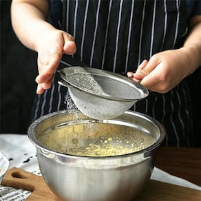 Kit completo de peneiras em aço inoxidável Moderna, super resistente e produzida em aço inoxidável de verdade, feita para durar muito tempo e se tornar sua companheira na cozinha, seja em preparo de doces, sucos, chás, etc. Funciona perfeitamente para peneiras partículas pequenas, pois a sua malha é fina. Seu cabo vazado permite que pendure as peneiras em suportes com gancho, inclusive acomodando uma dentro da outra, economizando um bom espaço na sua cozinha. Especificações técnicas Peneira P 21,5 cm comprimento x 8,5 cm diâmetro Peso: 44 g Peneira M 30,6 cm comprimento x 14 cm diâmetro Peso: 85 g Peneira G 38,4 cm comprimento x 20 cm diâmetro Peso: 149 g Conteúdo da embalagem: 3 peneiras 1 pequena, 1 média e 1 grande Ficha técnica - Cor: Inox - Diâmetro: 8,5 cm / 14 cm / 20 cm - Fonte do produto: - Material da estrutura: Aço inoxidável - Unidades por embalagem: kit com 3 peneiras - Plataformas excluídas: Desktop - Material da malha: Aço inoxidável - Tipo de malha: Fina Marca: Não Informado Ean: 6015605376348