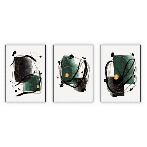 Kit Com 3 Quadros Decorativos Abstratos Com Moldura E Vidro Para Sala Quarto Escritório E Clínica 52x72 - Art. Q Cor Abstrato 002