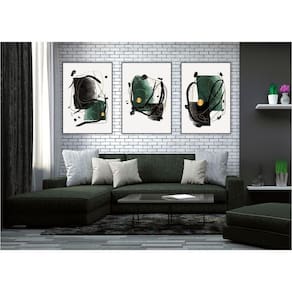 Kit Com 3 Quadros Decorativos Abstratos Com Moldura Para Sala Quarto Escritório 52x72 Abstrato 002
