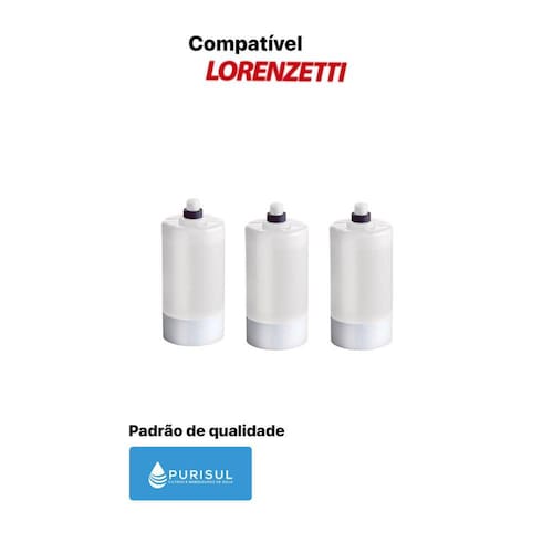 Kit com 3 refil vela filtro lorenzetti acquabella / vitalle Refil para purificador filtro de água lorenzetti Compatível com modelos: acqua bella e vitale Exija a qualidade purisul O elemento filtrante vela purisul possui alto poder de remoção do cloro livre, sabores e odores indesejáveis, levando mais qualidade para a água consumida pelas pessoas. Este elemento possui tripla filtração. A primeira camada de polipropileno atóxico retém a sujeira como areia, barro e limo. Na sequência, a água encontra um leito de carvão ativado, com eficiência máxima em redução do cloro. Por último, na etapa de clarificação, a água encontra uma nova barreira em polipropileno para evitar a passagem de sedimentos de carvão. Veja outras vantagens e benefícios deste produto: facilidade de instalação refil com carvão ativado atóxico e natural para uma filtração completa elimina gostos e odores desagradáveis presentes na água elemento filtrante descartável, não necessita retrolavagem 01 refil equivale a 2.000 garrafas de água de 500ml reduz os índices de cloro presente na água Descritivo técnico Temperatura de operação: 5c mín / 50ºc máx Pressão de operação: 19,6 kpa mín./392 kpa máx Composição: polipropileno e carvão Retenção de partículas: classe d - com redução do cloro livre Vazão: 20 l/h Grau de filtração: 15 micra um grão de areia tem entre 200 e 500 micra Peso bruto: 105g Peso líquido: 91g Dimensões da embalagem axlxp : 180 x 135 x 55 mm Marca: purisul Código de barras: 7896811106948 Código do produto: 904-0530 Normas e referências: O uso deste aparelho destina-se a águas que atendam a portaria nº 2914 do ministério da saúde. Diâmetro do refil: 53 mm Rosca de: bsp Rosca curta: 17,5 mm de altura - 128 mm altura total Atende as especificações da norma nbr 16098:2012 As referidas marcas citadas são propriedades de seus fabricantes e são citadas para demonstrar a compatibilidade do produto. Obs.: nosso estoque de produtos e composto pelos fabricantes purisul . Ambos possuem qualidade premium igual a da lorenzetti. Marca: Purisul