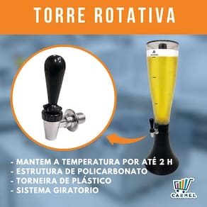 Ela é giratória para atender todos ao redor da mesa. Ideal para chopp ou cerveja, é super prática, basta colocar o tubo de inox congelante e até 3,5 litros de sua bebida favorita, e sirva-se a vontade, ela estará gelada até a última gota.