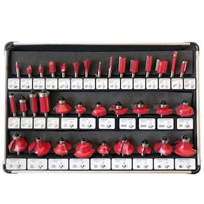 - Marca: Charbs - Referência: 00021 - Haste: 6mm - Jogo com 35 fresas para diversas aplicações - Indicada para tupias de qualquer marca que tenham pinça de 6mm - Maleta em alumínio - 6 Fresas retas: 1/8, 1/4 ,1/2 x 1, 1/2 x 3/4, 3/8 e 3/4 - 2 Fresas rasgo em U: R1/8 e R1/4 - 5 Fresas retas com rolamento: 3/8 x1/2, 3/8 x 1, 1/2 x 1/2, 1/2 x 1 e 3/4 - 1 Fresa chanfro 45° : 1/2 - 2 Fresas Moldura Romana: R5/32 e R1/4 - 2 Fresas Moldura Arredondada: R1/4 e R3/8 - 1 Fresa de canto Wave: R5/16 - 2 Fresas rabo de andorinha: 1/2 e 9/16 - 1 Fresa de Entalhar : 1/2 - 1 Fresa Round Nose: 1/2 - 3 Fresas quebra Canto com rolamento : R1/4, R3/8 e R1/2 - 1 Fresa rasgo em V (Ângulo 90): 1/2 - 1 Broca Piloto painel: 1/4 - 3 Fresas Rebaixo Slot Cutter Bit : 1/4, 5/16 e 3/8 - 1 Fresa de Arrendodar Beading Bit :R1/2 - 1 Fresa de Arredondar Classical Cove Bit : R5/16 - 2 Fresas moldura Classical Bit: R3/16 e R1/4 - Peso bruto: 1,7Kg - Garantia: 90 dias