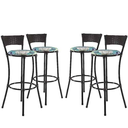Kit Com 4 Banquetas Altas Forts Fibra Uv Bancada, área Goumert, Bar, Piscina, Balcão, Floral Azul