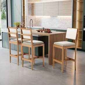 - 4 Banquetas Modelo Milena Em Madeira Com Assentos Estofados (Montadas)