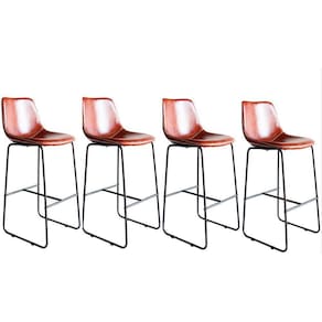 Kit Com 4 Banquetas Oxford Assento Em Couro Ecológico E Base Cromada Fratini Conhaque