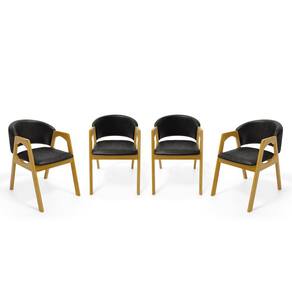 Kit Com 4 Cadeiras Agatha Madeira Maciça Estofada Para Mesa De jantar Courino Preto 503 - Cadeiras Para Sala De Jantar Estofadas