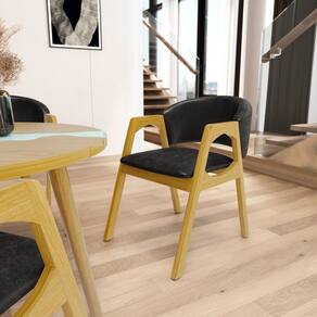 Apresentamos a você a cadeira Agatha, ela é estofada com espuma D-23 no assento, espuma D-23 no encosto e seus pés são feitos de madeiras maciças de eucalipto na cor castanho.