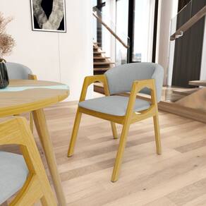 Apresentamos a você a cadeira Agatha, ela é estofada com espuma D-23 no assento, espuma D-23 no encosto e seus pés são feitos de madeiras maciças de eucalipto na cor castanho.