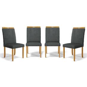 Kit Com 4 Cadeiras Agnes Madeira Maciça Estofadas Para Mesa De Jantar Linho Chumbo 406 - Cinza