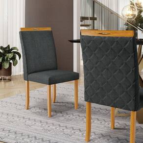 Kit Com 4 Cadeiras Agnes Madeira Maciça Estofadas Para Mesa De Jantar Linho Chumbo 406 - Conjunto Kit Com 4 Cadeiras De Sala De Jantar Estofadas