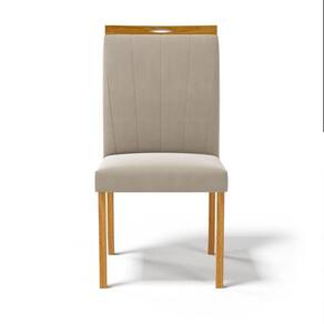 Kit Com 4 Cadeiras Aurora Madeira Maciça Estofadas Para Mesa De Jantar Veludo Bege 102 - Conjunto Kit Com 4 Cadeiras De Sala De Jantar Estofadas