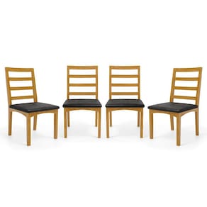 Madeira maciçaKit Com 4 Cadeiras Cecília Madeira Maciça Assentos Estofados Para Mesa De Jantar Courino Preto 503 - Cadeira Em Madeira Maciça Assento Estofado