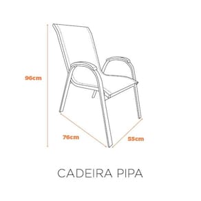 A cadeira Pipa é super estilosa para usos em áreas de piscina e ambientes externos! Seu assento em tela garante beleza, além de conforto para quem utiliza. Além de ter a resistência de seu acabamento em alumínio, é ideal para uso em área externa. Seu detalhe do braço, garante todo o charme da madeira, porém, com a resistência da resina. Acabamento da Estrutura: Tela Mesh Ambiente Principal: Jardim e Varanda Cor: Cinza Cor do Produto: Cinza Escala de Brilho: Fosco Estrutura do Assento: Fixo Estrutura do Encosto: Fixa Itens Inclusos: Cadeira Completa Manual de Montagem e Instalação: https://product-hub-prd.madeiramadeira.com.br/954977/documents/11aae5d5-5f66-448a-913f-0e7fc74b490180261727447507954977115286.pdf Marca: Fratini Móveis Necessita Montagem: Não Origem do Produto: Importado Peso: 3,42 kg Possui Rodízio: Não Recomendações de Uso, Manutenção e Limpeza: Pano Umido Resistente à Chuva: Sim Suporta Até (kg): 120 kg Tipo de Assento: Fixo