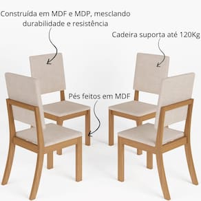 MDF, MDP, Espuma D18, Suede AveludadoKit com 4 Cadeiras de Jantar Milla Nature / Linho - Feitas para Durar: Beleza e Robustez em sua Sala